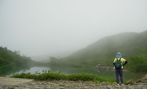 上記で写したようなところは登山装備がなくてはダメだが(それでもスニーカーという人もいたが…)、上の八方池までは軽装でも行けるとのこと。青空だったら綺麗だったんだろうけれど、生憎の天候。