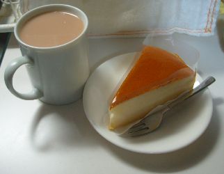 お茶請けは昨日のお茶請けとセットになっていたチーズスフレ。ライトテイストなのでお茶負けしている。上部の杏子のゼリー膜がお茶の味を引き締めてくれたので、ザッハトルテとも合うかもな~などとのんきに思っておりました。…くぅ~デメルのザッハトルテ食べたい~。